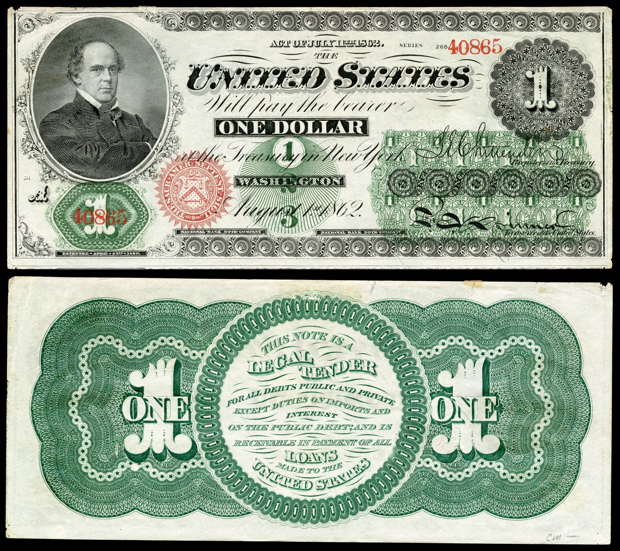 In 1862, Congress passed the Legal Tender Act, authorizing the issuance of non-interest-bearing United States notes that were not redeemable in gold or silver specie, but were nonetheless "legal tender in payment of all debts, public and private, within the United States, except duties on imports and interest." (That the federal government still mandated gold for payment of duties demonstrates that it continued to value hard money, it just didn't have enough to wage a total war.) These notes came to be called "greenbacks."
