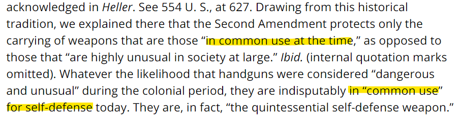 In other words, "the Second Amendment protects the possession and use of weapons that are “‘in common use at the time.’”