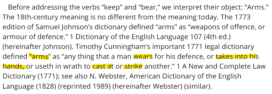 Relying on common understanding at the time of the Founding, Heller defined protected "arms" under the 2A as: