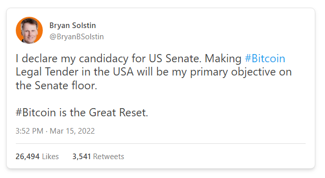 Savvy politicians and candidates are seeking to curry favor with Bitcoiners by making bold proclamations about working to make Bitcoin legal tender: